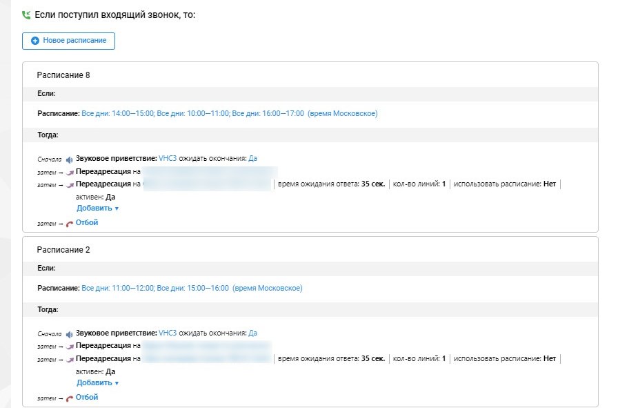 Два отдела используют идентичную схему работы со входящими звонками.